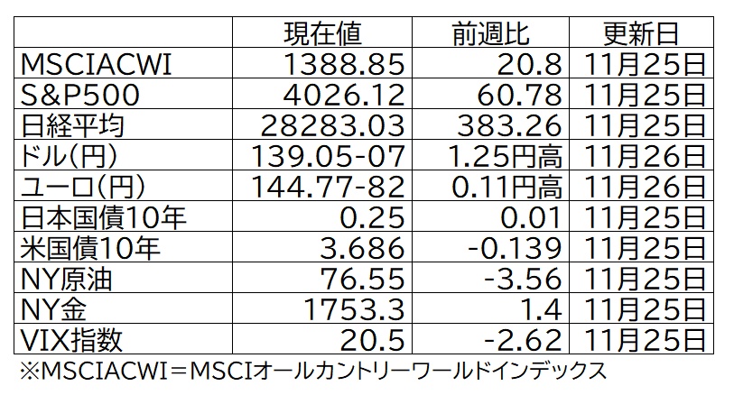 今週の市況情報2022年11月27日